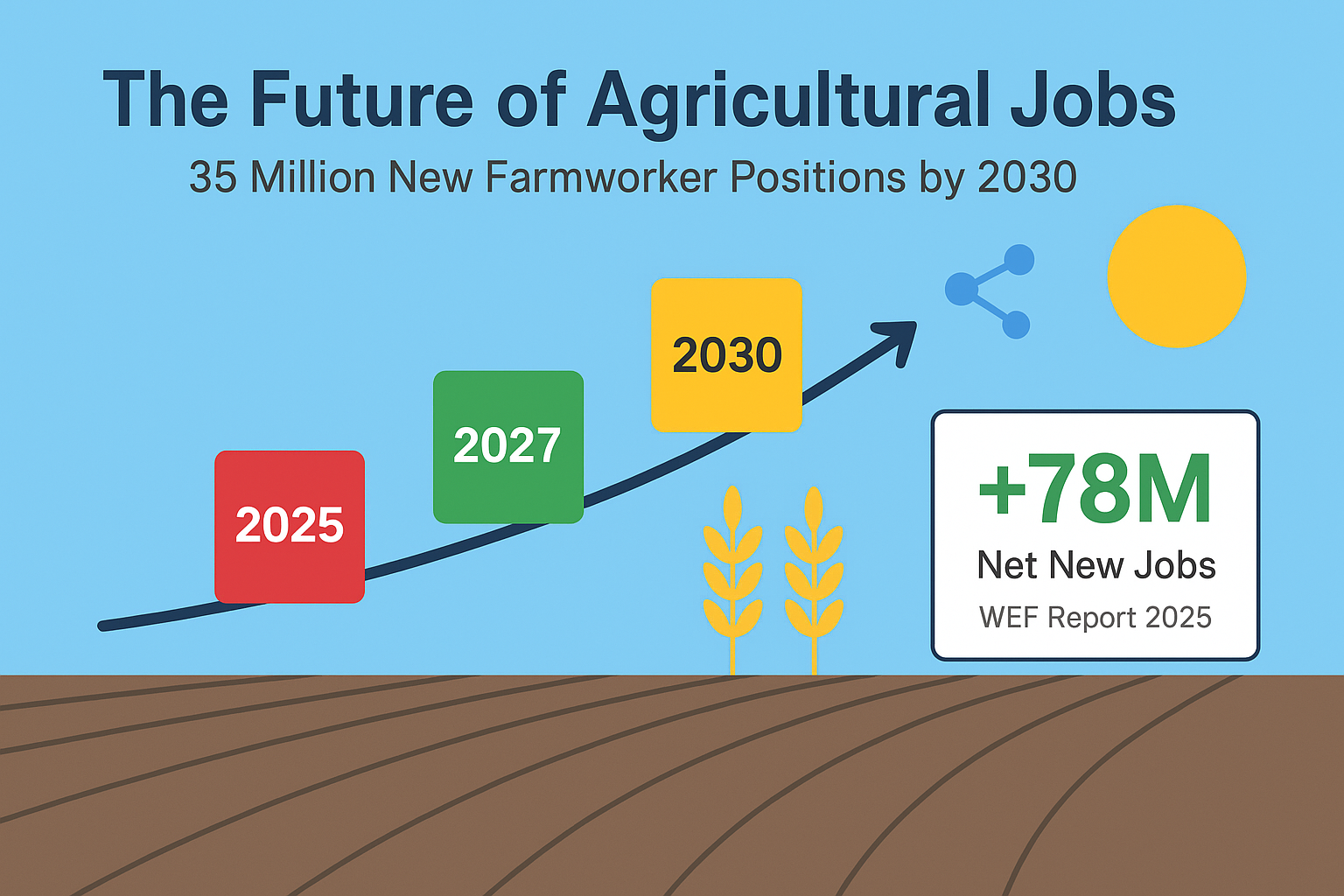 Despite the slow adoption of some advanced technologies, the agriculture sector is expected to see significant job growth, with farmworkers predicted to see the largest absolute growth of any job type, an estimated 35 million new jobs by 2030. This growth is driven by the green transition, broadening digital access, and rising costs.